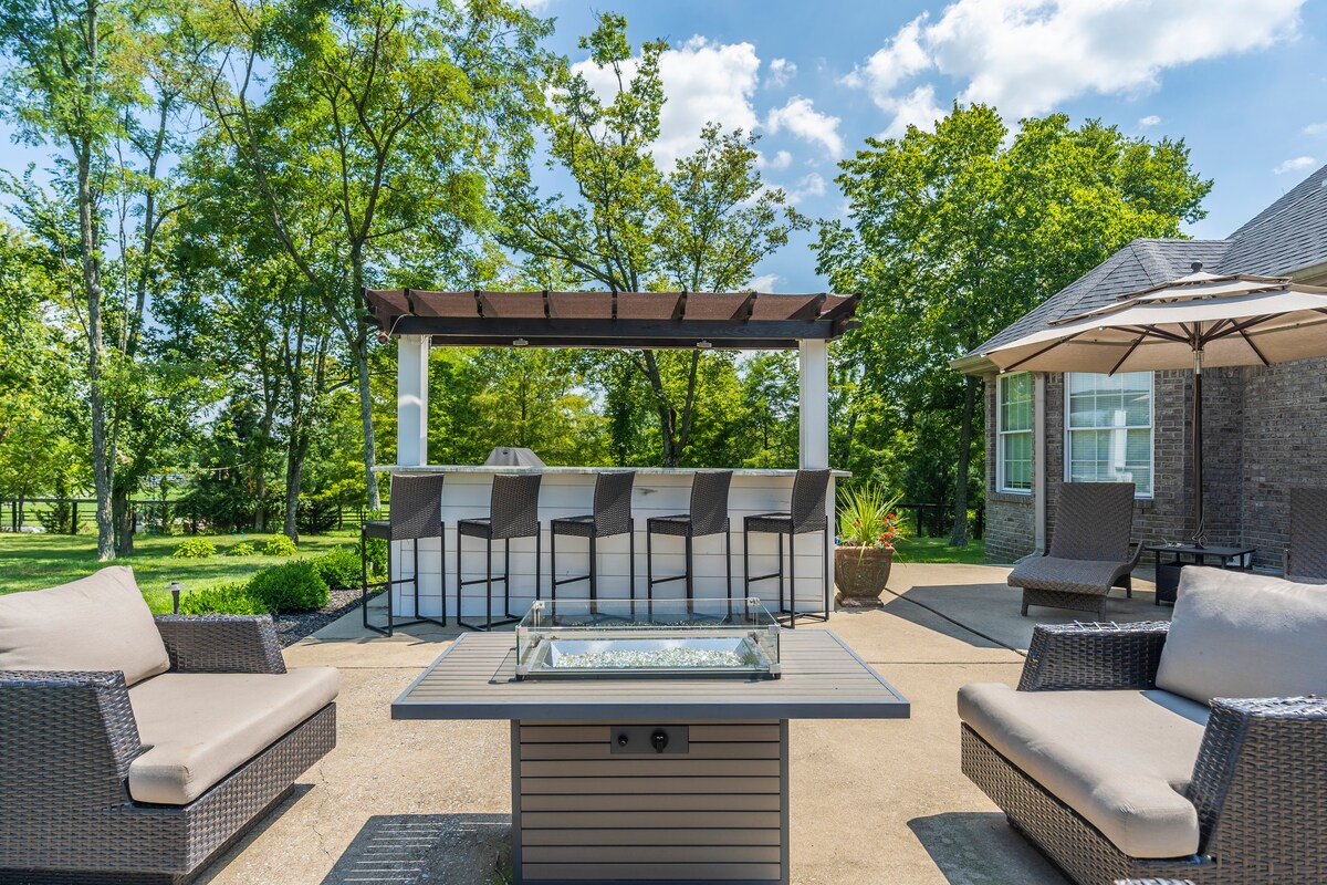 Bring the whBeautiful private gated 3-acre estate located in the middle of horse farms in Lexington, Ky. Access to a fishing pond stocked with plentiful catfish and bass. Basketball goal for games with family and friends. Grill out while entertaining and back patio with seating for up to 16! Large fenced-in back yard perfect for dogs and with views of surrounding horse farms. ole family to this great place with lots of room for fun.